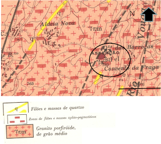 Fig.1 - Excerto da carta geológica de Portugal, folha 14-D - Aguiar da Beira (Serviços Geológicos de Portugal, 1972)